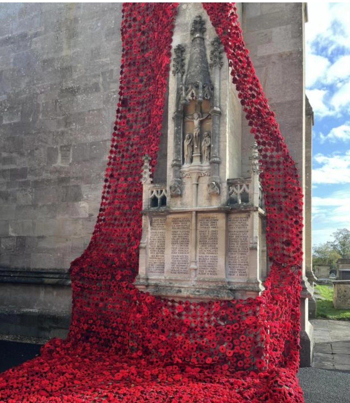 O primeiro compromisso desta terça-feira acontece na igreja St Bartholomew’s Church, em Corsham, que preparou uma comovente exposição de papoulas em croché — símbolo tradicional do “Remembrance Day”. A instalação presta tributo aos veteranos e marca o 80.º aniversário do fim da Segunda Guerra Mundial.