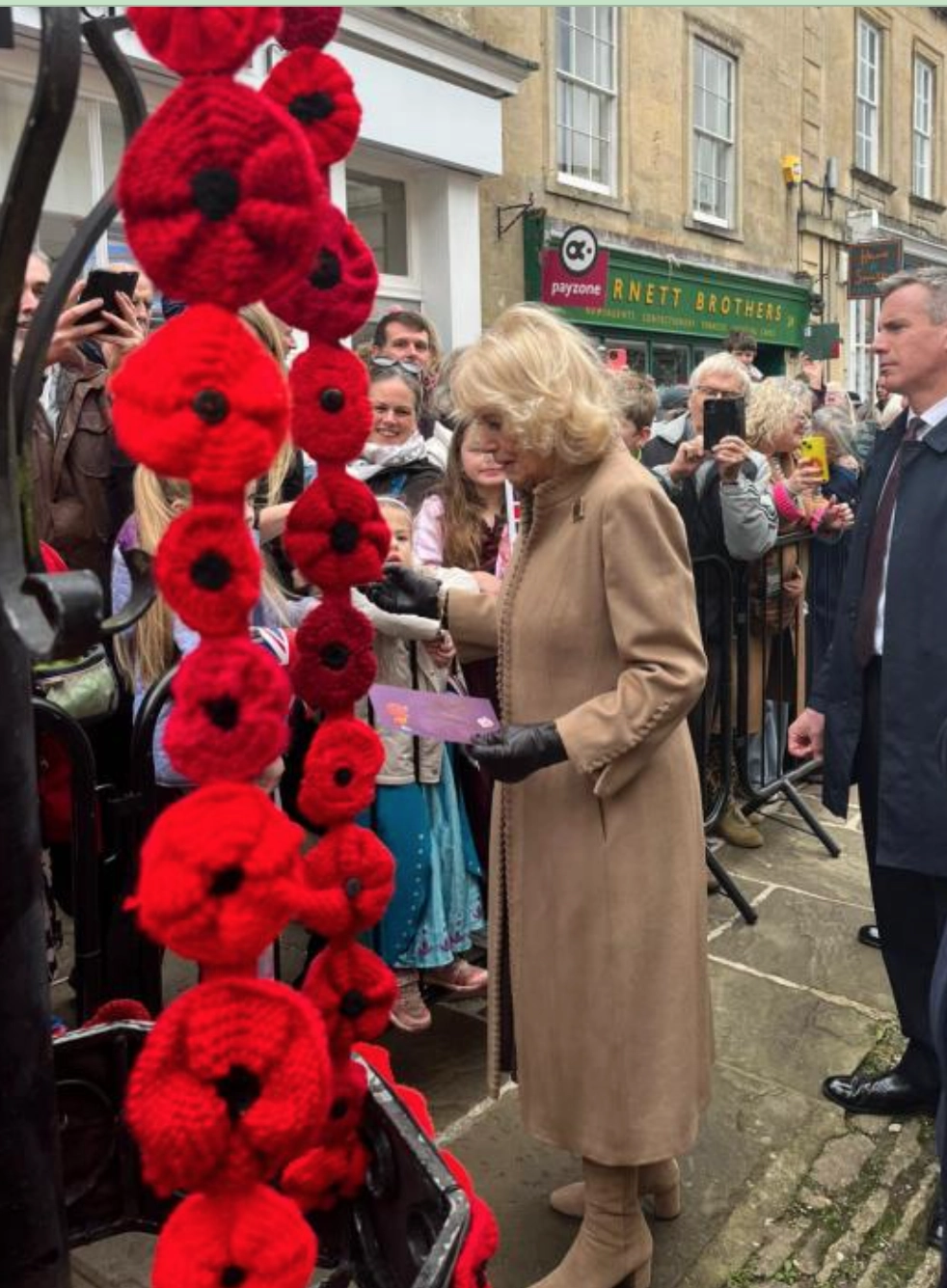 A Rainha foi recebida por membros da comunidade local e voluntários responsáveis pelo projeto, conhecido como “Poppy Project”, iniciativa que mobilizou dezenas de residentes de Corsham e vilas vizinhas.
