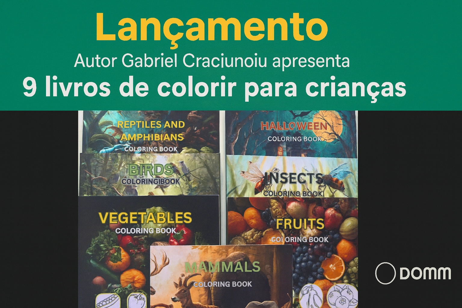 O autor e ilustrador Gabriel Craciunoiu apresenta ao público infantil um conjunto de 9 livros de colorir voltados para crianças de 3 a 12 anos, reunindo arte, diversão e aprendizagem em uma série cuidadosamente produzida. As obras estão disponíveis para compra online, inclusive no mercado internacional em língua inglesa, para que crianças de diversos países possam explorar mundos de cor e imaginação.