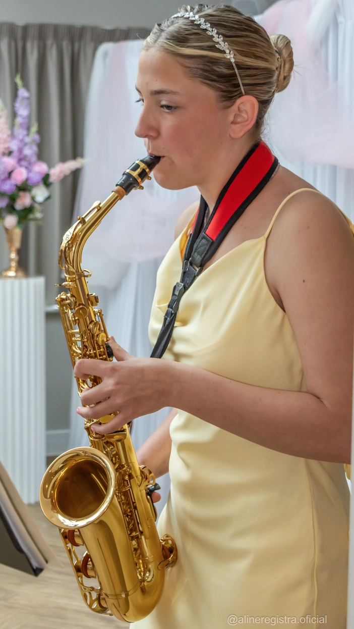 Emily Smith, que envolveu todas com o som elegante do saxofone 🎷